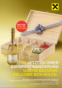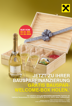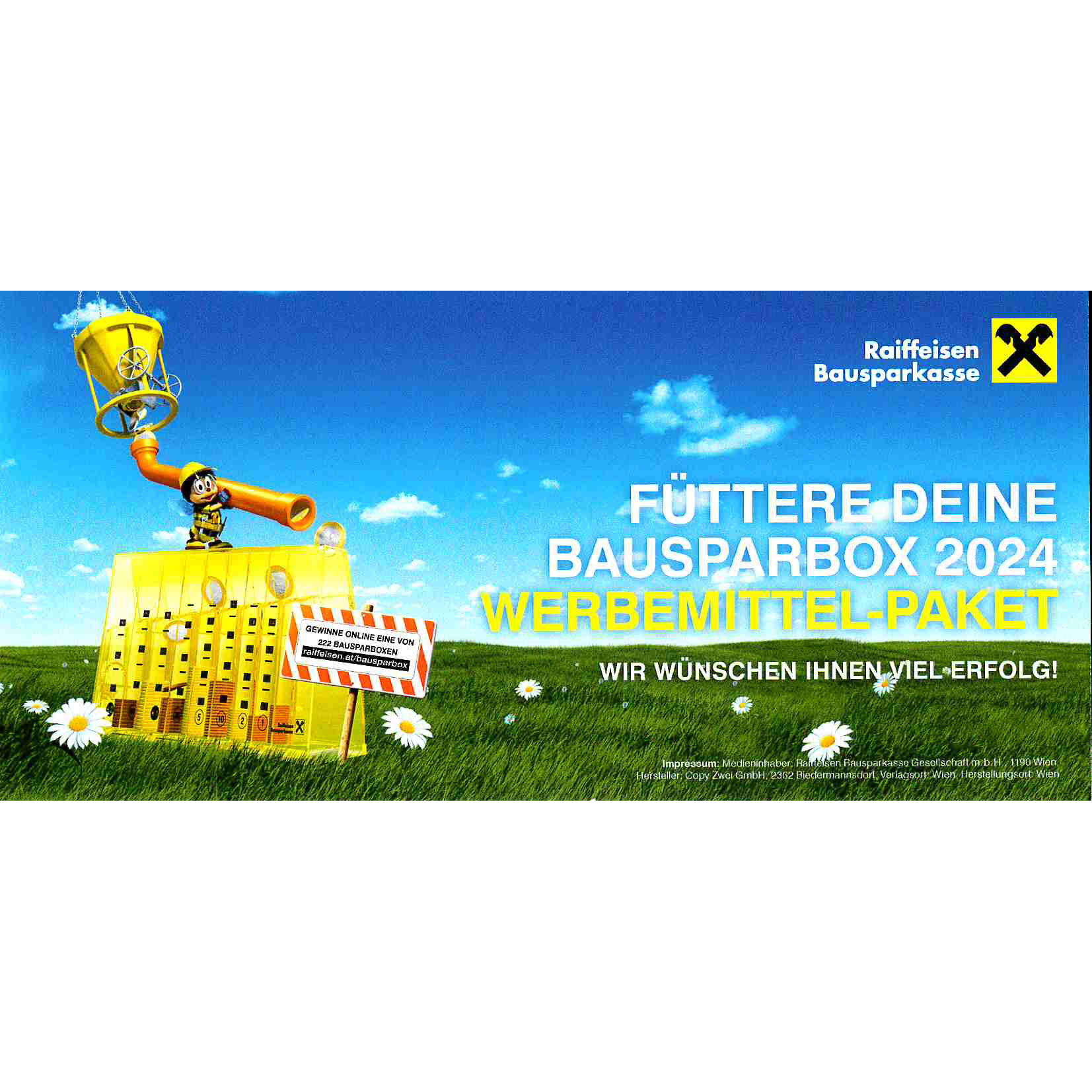 Das POS-Werbemittelpaket mit allen Werbemitteln der Aktion „Bauspar-Welcome-Box 2024“ (inkludiert: 2 Stk. Poster – Format A1, 10 Stk. Übergabe-Coupons