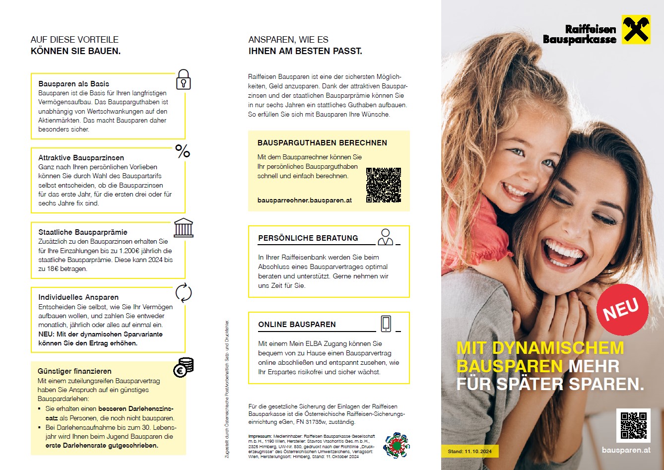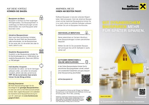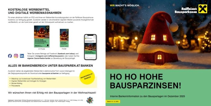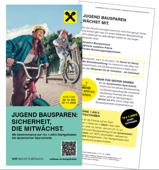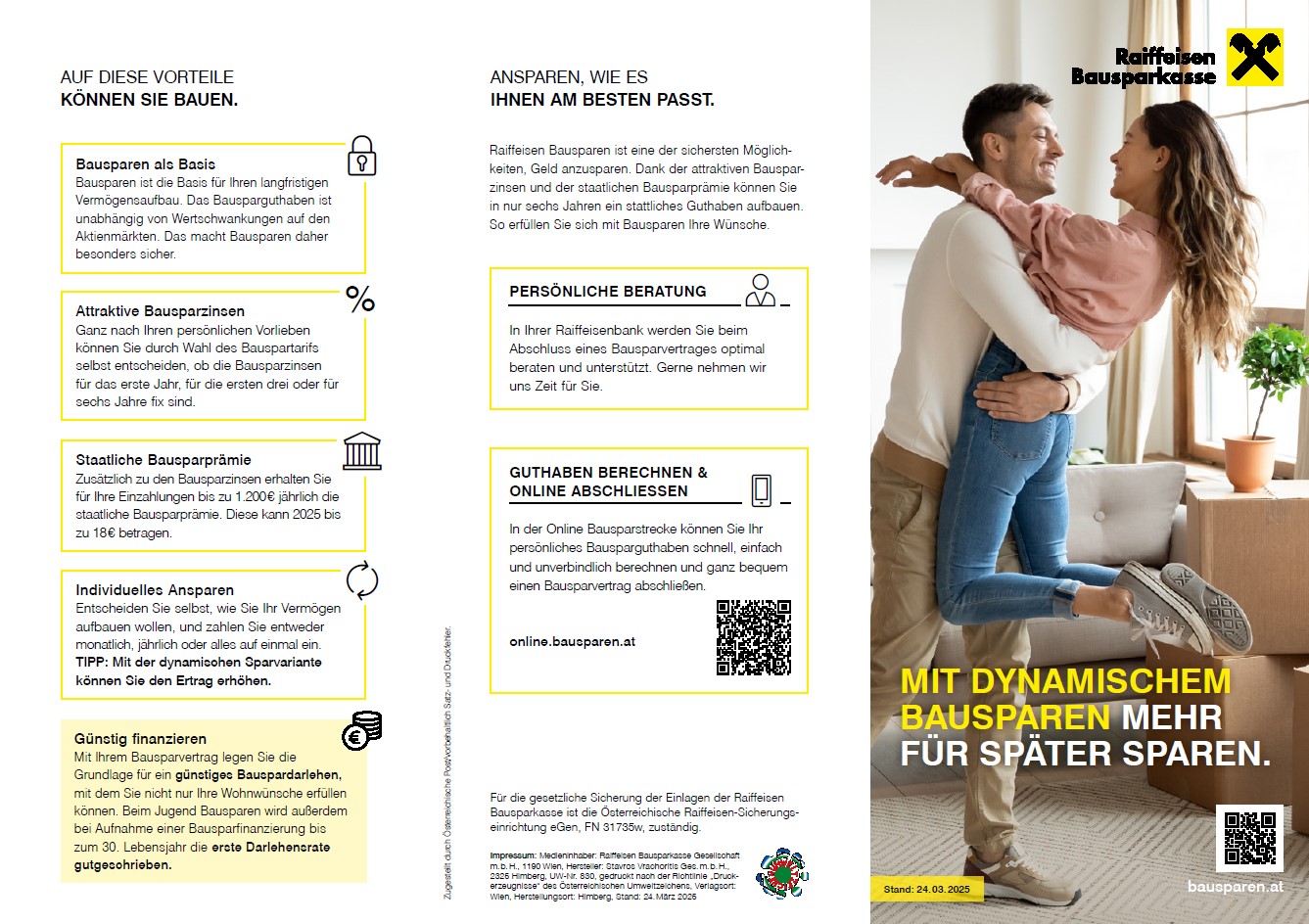 Das POS-Werbemittelpaket mit allen Werbemitteln der Aktion „Bauspartage 2025“ (inkludiert: 2 Stk. Poster, 15 Stk. Folder, 2 Stk. Bankeninformation)