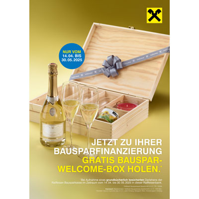 Das POS-Werbemittelpaket mit allen Werbemitteln der Aktion „Bauspar-Welcome-Box 2025“ (inkludiert: 2 Stk. Poster – Format A1, 10 Stk. Übergabe-Coupons).