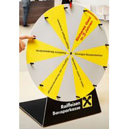 Das Poster Gewinnmechanik im Format A1 kann gemeinsam mit den Gewinnmechaniken (z.B. Bauspar-Würfel Spiel, Zielwurfspiel, Torwand, …) eingesetzt werden und macht Kunden auf das Gewinnspiel aufmerksam.