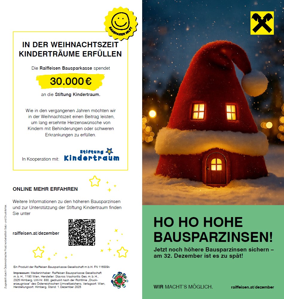 Für Fragen zu dieser Kampagne steht Ihnen Frau Julia Moritz, MSc– E-Mail: julia.moritz@raibau.at, Tel.: +43 (1) 546 46-2818 –gerne zur Verfügung.